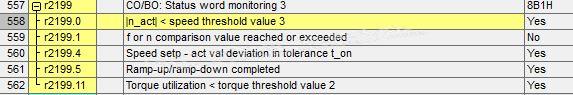 本案例中,安全继电器选用了auto模式,也就是安全消失后再次恢复不需要脉冲复位了,安全继电器直接输出,本案例监控安全门锁的线圈。安全门锁的打开条件可以串接在图中所示位置。本例中将驱动的转速作为条件,如果转速低于某一固定值时门锁可以打开。