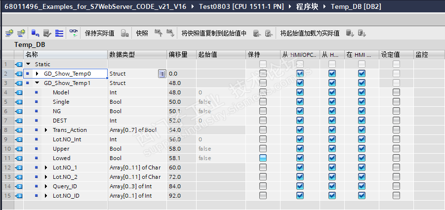 300支持SCL中用 DB.Type(#偏移量)的方式寻址,还是蛮方便的。DBD0,4,8,12……用绝对地址依次比较,如果不相等就输出结果。