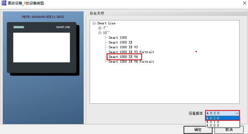 - 在弹出的窗口中选择Smart V4 面板,在设备版本中选择4.0.2.0的版本。