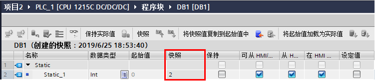 4、值得注意的是上传的DB块包含起始值与快照值,快照值也就是上传时DB块变量的实际值,可以用来将其加载为实际值或初始值。