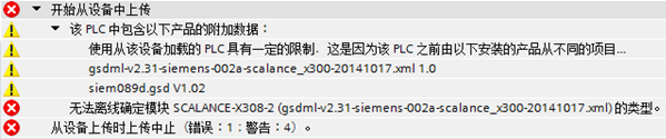 3、项目中含有TIA Portal 没有的 HSP 或 GSD,则无法上传。