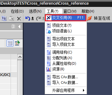 交叉引用列表提供项目中对象的使用概况。 可以看到哪些对象相互依赖以及各对象所在的位置。 因此,交叉引用是项目文档的一部分。还可以直接跳到对象的使用位置。可以在交叉引用列表中显示和定位的对象取决于所安装的产品。