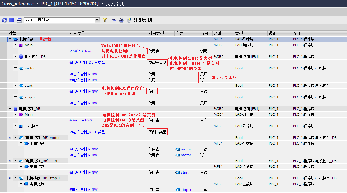同时选中FB1和DB2,右键,交叉引用,打开交叉引用列表,表中内容显示如图6.所示。