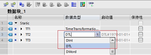 在DB块中创建数据类型“TimeTransformationRule”的变量,需要在数据类型一栏中直接输入“TimeTransformationRule”。