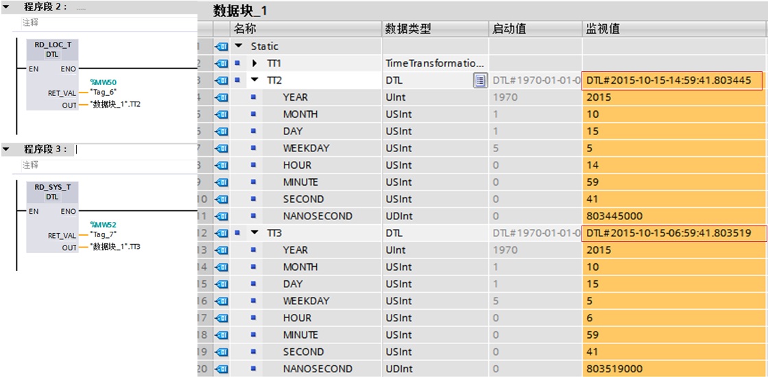2.读取S7-1200CPU的系统/本地时钟指令的使用。