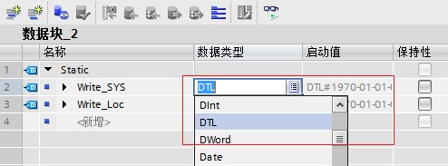 在DB块中创建数据类型为DTL(时间和日期)的变量。