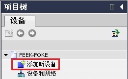 在 STEP7 V11 创建新项目 PEEK-POKE,双击“添加新设备”在项目中添加 S7-1200 PLC_1,CPU 1214C DC/DC/DC。