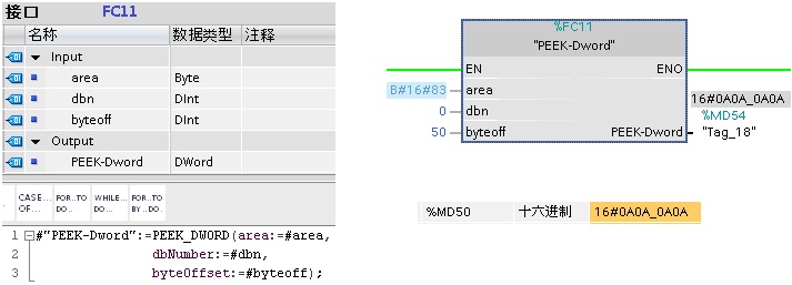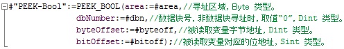 PEEK 指令用来读取输入(I)、输出(Q)、存储器(M)或数据块(DB)变量,支持位、字节、字、双字操作。PEEK指令将获取的数据值以返回值的方式赋值给对应的变量。