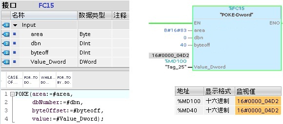 POKE 指令可以用来对输入(I)、输出(Q)、存储器(M)或数据块(DB)变量地址进行写操作,不仅支持位、字节、字、双字操作,还可以区域操作,实现区域数据移动。