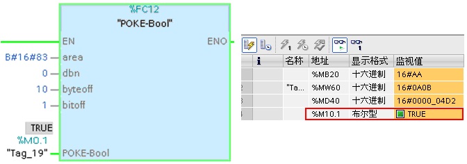 使用 POKE_BOO L指令编写程序 FC12 ,将 M0.1 的值写入 M10.1: