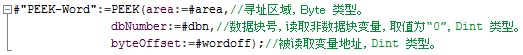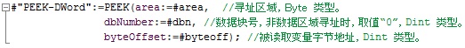 PEEK (_BYTE) ,读字节变量,指令中BYTE 类型可省略,指令格式。