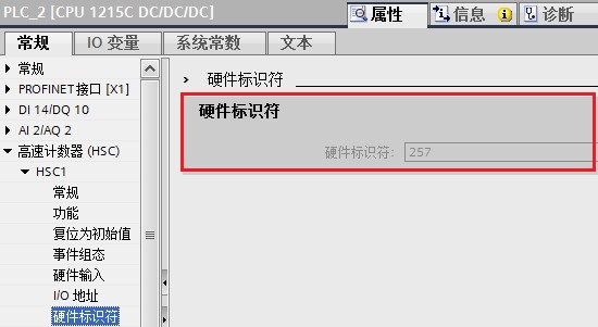 注意:应根据CPU属性里的硬件标识符设置该值, 如硬件标识符为257, 应将指令输入的 HSC 值从 1 改为 257,如下图 14 所示: