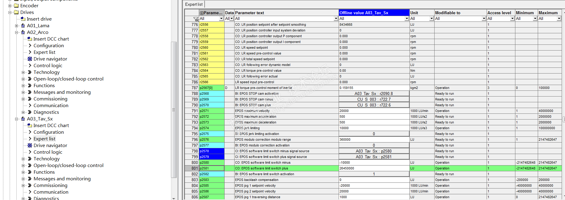 如图所示,该驱动对象号即P121为4,其对应的DBD应该为4096,而我们需要修改的参数为P2581如图。