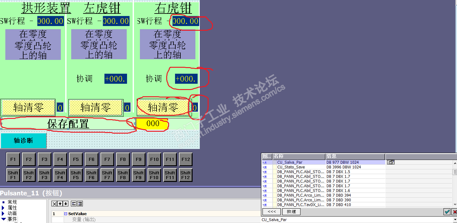 触摸屏这边需要关联的参数为DB2581.DBD4096.这样就可以通过触摸屏直接对S120的相关参数进行修改,以达到限位调整的目的。同理可对各轴正负限位做出调整。
