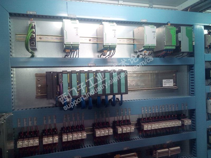 参加工作到接触工控产品开始一直用的都是日系的PLC及触摸屏等。四年前跳槽到我现在的公司才开始接触到西门子工控产品,公司的PLC产品有S7-200,S7-300,S7-400还有最近正在安装设备上选用的S71200等,直流驱动器有6RA70,6RA80产品。变频器有MM420.MM430.MM440及6SE70等产品。这些年用过的工控产品尤其是变频器直流驱动器品牌也比较多,感觉还是西门子的产品好学,好用质量稳定。驱动系列产品的衔接也特别的好,掌握了一种产品使用后,学习其他的产品也就容易得多。再加上西门子的网站(技术论坛及找答案)及热线电话都做得很好。记得上次调试用BOP面板调试一台STARTER DCM驱动器,电机优化完以后开始关联BICO数据,有一个参数咋都连不上,又恰好遇到是星期天,调试了整整一天也没搞定,第二天打西门子热线电话20分钟不到问题立即得到解决。以下是公司设备上的西门子产品的照片: