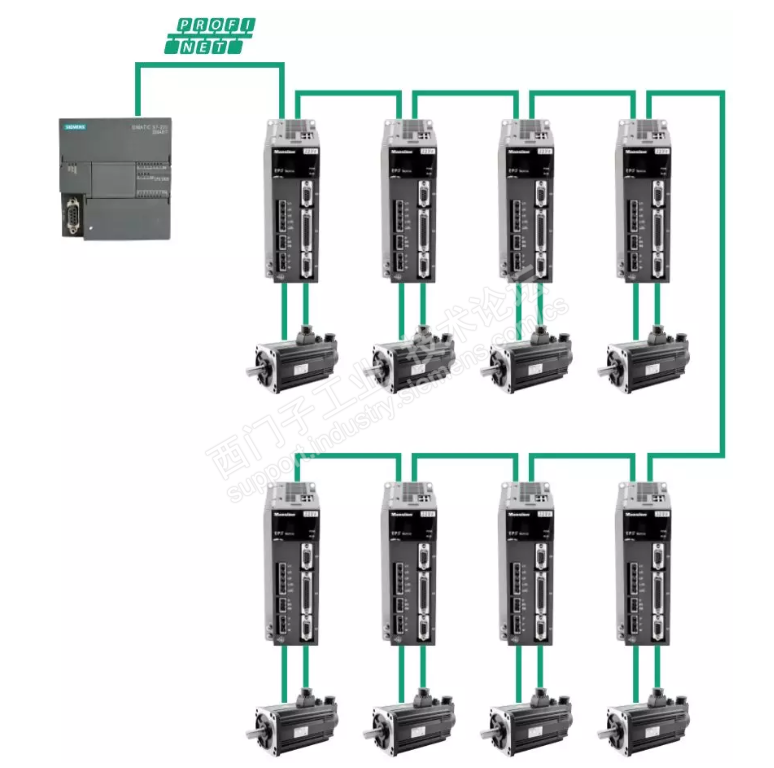 不过可能夸张了一点,实际使用估计没人会这么干,至少估计没人会带这么多V90PN。其实虽然smart开发了PROFINET,支持了EPOS模式带V90PN。但是一般用smart的用户很少能负担起V90PN伺服的价格,另外加上货期等问题。估计现实中现在用的人很少,所以这就给了国产PN伺服一些机会。