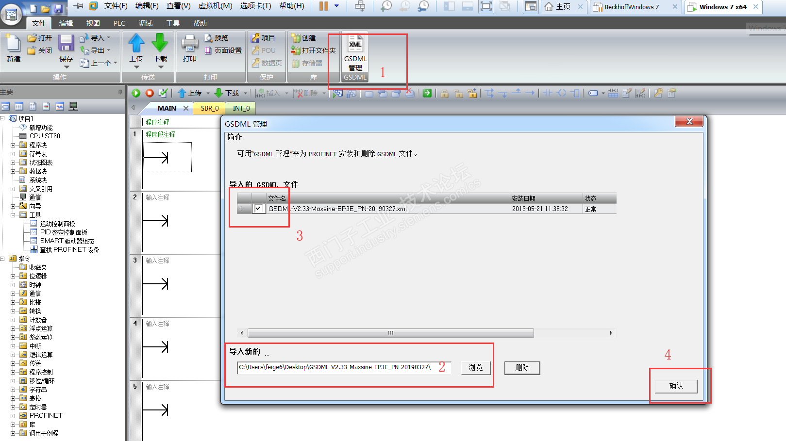 用STEP 7-Micro/WIN SMART V2.4新建PLC项目并且加载迈信伺服的GSD文件