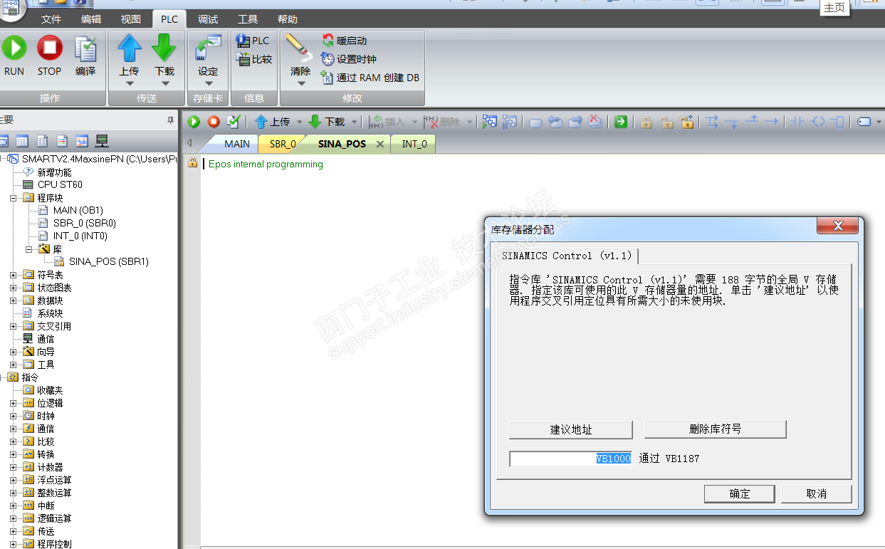 3PLC编程软件 STEP 7-Micro/WIN SMART V2.4以上同时SINAMIC Control库V1.1 https://support.industry.siemens.com/cs/cn/en/view/109766118/zh