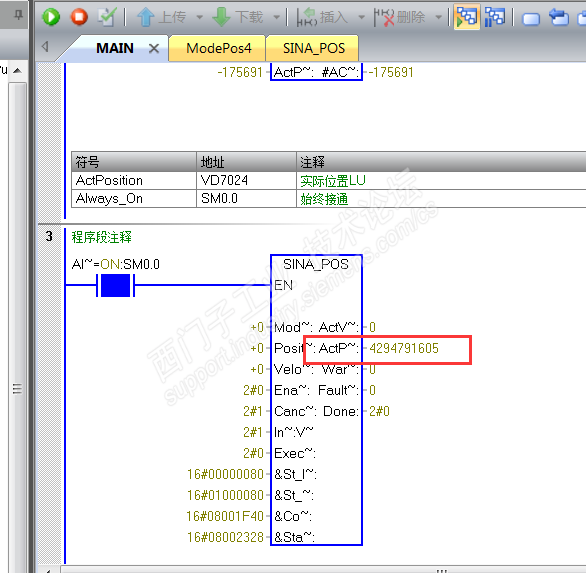 编译完成下载到smart中,监控以后有了位置显示。说明组态完成了