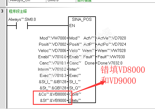 调用SINA_POS子程序其中的St_I_add和St_Q_add的地址与组态中111报文的输入输出地址对应