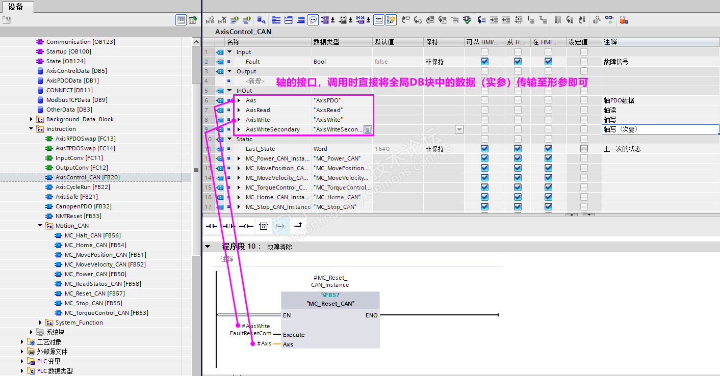 最终将这些简单的功能块加以汇总,形成轴控制功能块AxisControl,如下图所示: