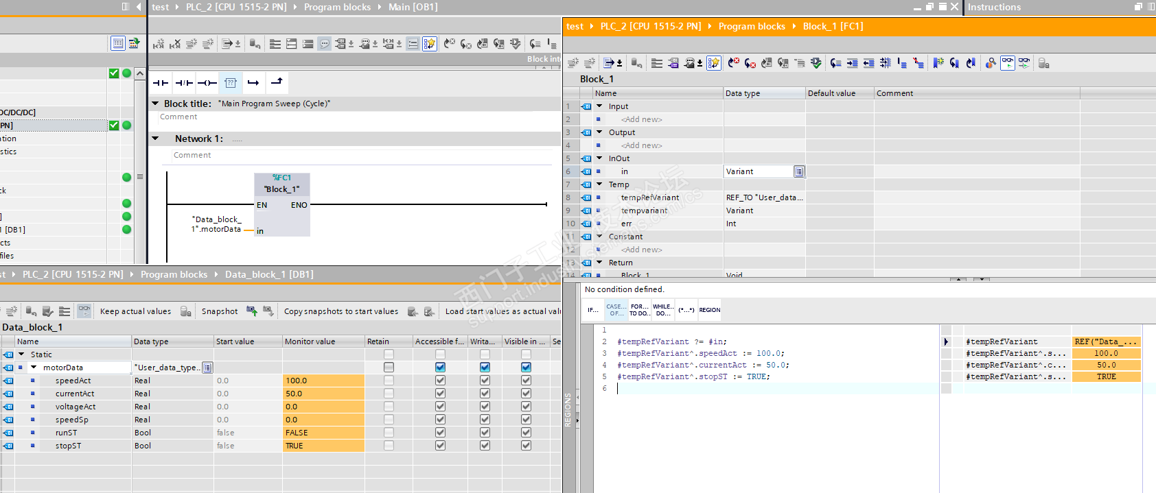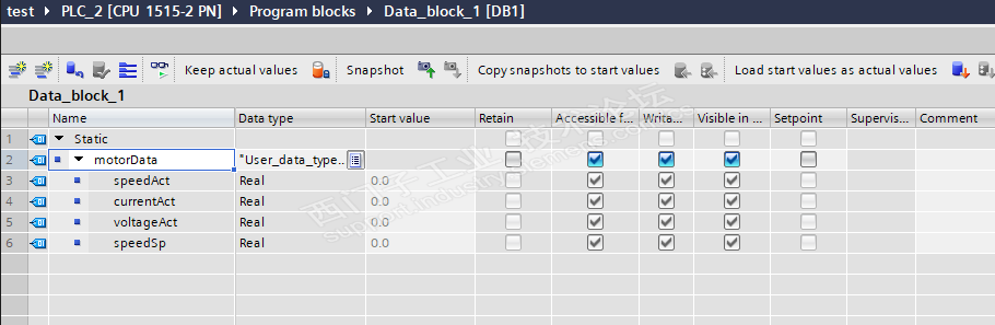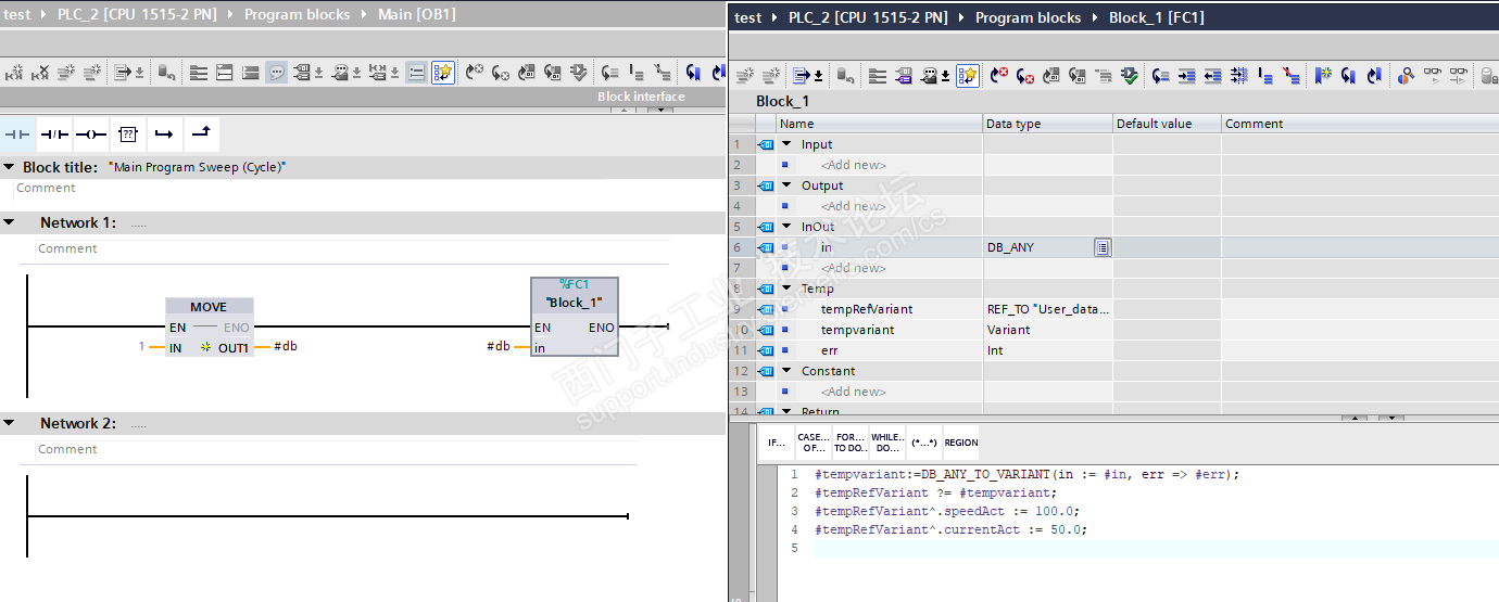 测试了一下,通过DB_ANY来做DB变址行不通,虽然编译不报错,但是PLC运行后,故障停机,说明DB_ANY还是不能通过references来直接操作,有点遗憾。见下图