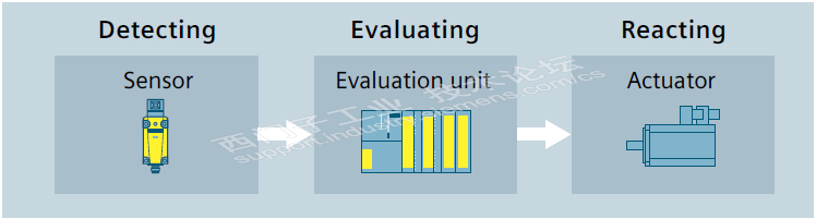“安全”的概念对于有些人来说并不太了解,“安全”其实是定义了一种状态,在这种状态下,损害风险降低到可容忍的水平,或者可以认为无风险的。“功能安全”是指对人、机器和环境的保护,安全系统的目标是将用例给人和机器带来的风险降到可接受的水平。安全功能描述了当特定事件发生时,比如打开安全门或拍下急停按钮时机器或设备的反应。安全功能的执行由安全相关控制系统进行,通常包括三个子系统,检测系统、评估单元、执行系统。
