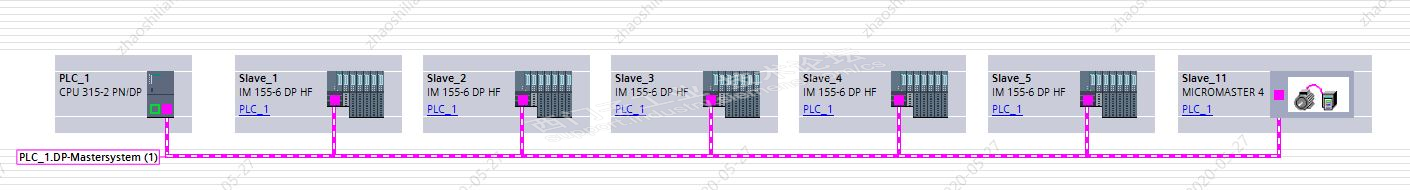 客户是很好的人,表示能够理解我的难处,让我先回去剩下的让领导们去谈,他们多断断电也能生产。弄得我有点莫名的心酸,不管什么原因也是自家的设备出了问题不搞好也不好意思。突然灵机一动想到一个办法,我把爱掉线的站挪到PLC附近会不会好一点,死马当作活马医。稍作改动把拓扑由图一改为图二,把MM440提到了PLC前面。