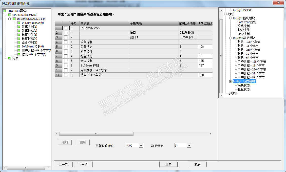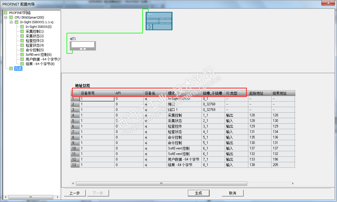 我的项目主要应用了一台西门子S7-200 SMART SR60的PLC,软件版本V2.4,没有使用通信模块,与康耐视的工业摄像头IS8000系列进行Profinet通信,通过学习把工业摄像头的GSD文件导入到PLC,并且也能搜到工业相机,并且连接上,把向导等下载到PLC都没有出错 ,通过PN_RD_REC 指令从 PROFINET 设备读取数据记录。根据指令要求,把需要的参数写好,但是读不到数据。