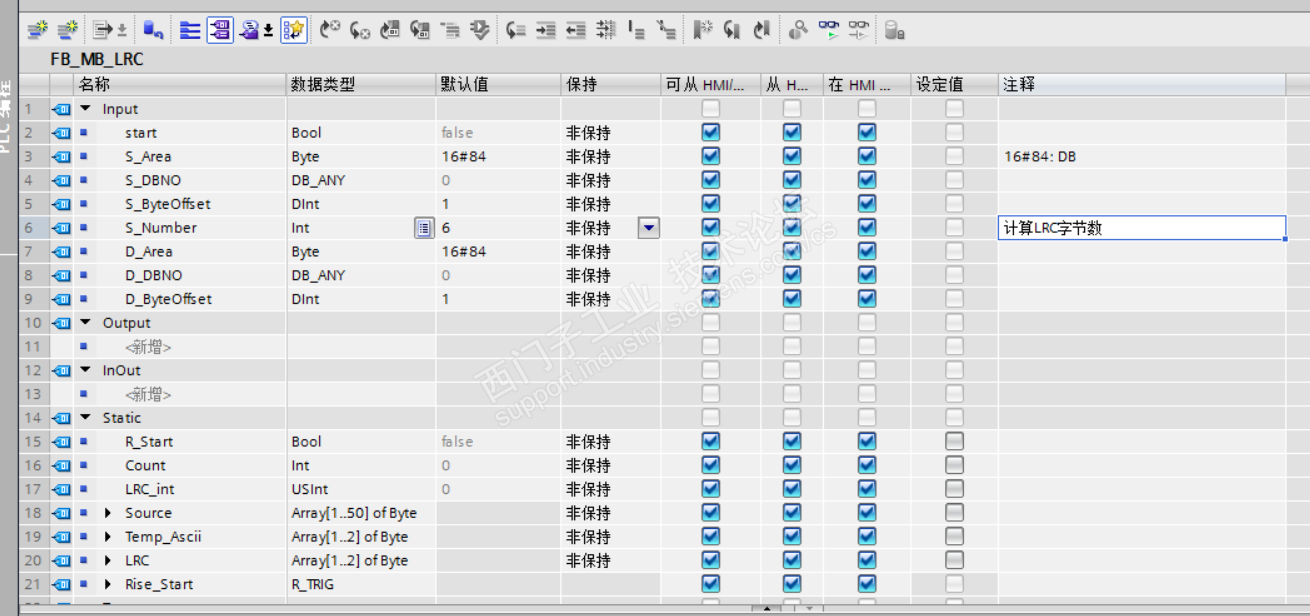 【西门子技术π-从S7-300400到S7-1500移植与更新替代】 ModbusAscii-LRC校验程序