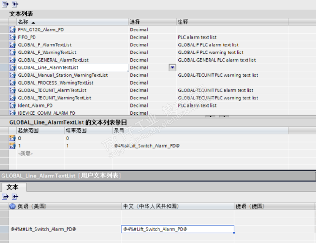 Prodiag 报警ALARM使用PD_TEXT的字符串,无法实现中文英语翻译.