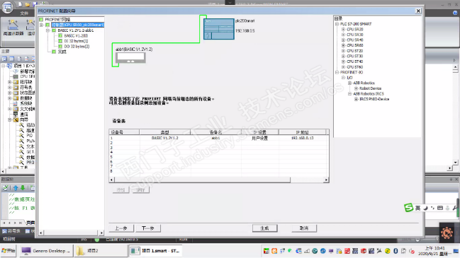 3.1.3 考虑可能是ABB机器人的设置问题。找来一个S7-1200 PLC进行进行测试,按照步骤配置之后连接成功,证明机器人是没问题的。