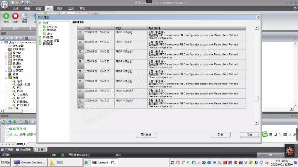按照西门子Smart PLC的文档进行配置,先挂ABB的GSD文件,然后配置PN参数,配置完毕后,下载程序,然后用网线将PLC和IRC5连接。等待一段时间后,PLC的ERROR灯仍然显示有错误,于是用软件连上PLC,监控PLC的事件,发现显示未连接,如图1、图2。