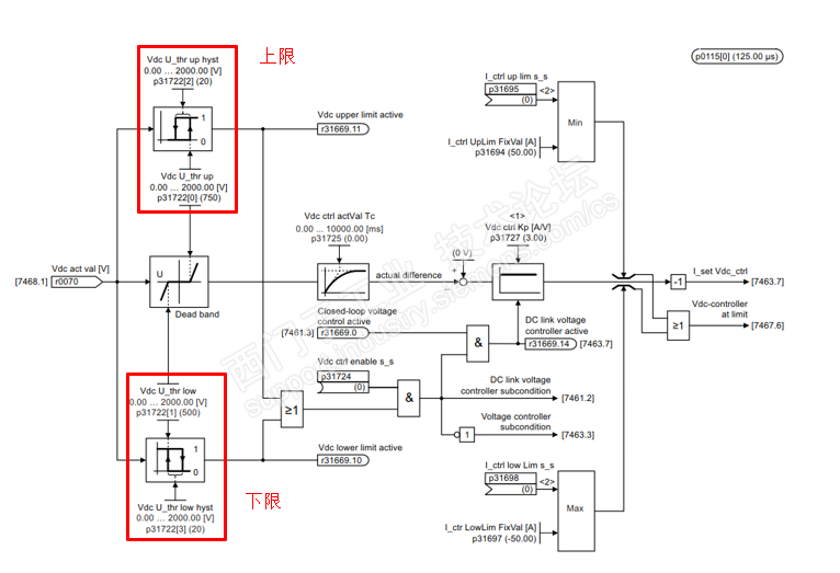 DCDCCONV可以在储能装置充放电时限制输出功率,防止电源过载。相关参数p31730 p31731 p31734 p31737 p31738,如图2-7