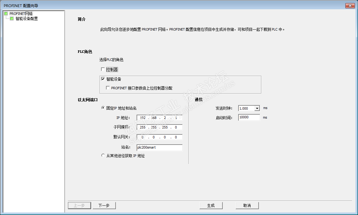首先组态PN IO设备,以便导出GSDML,在组态PN IO控制器时使用,值得称赞的是MICROWIN Smart软件增加的Profinet向导工具非常简单实用,进入向导界面后首先选择PLC角色,即PN 设备,如图1