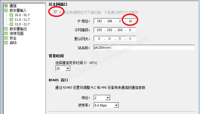 PN 设备组态完成后,系统块中通讯背景时间被修改并固定为20%,默认值为10%,此处设置确保PN通讯最大周期时间,如果用户组态128字节输入/128字节输出,用户程序占用较大资源的前提下,20%的背景通讯时间能保证通讯数据的完整性,防止系统报错。如图3
