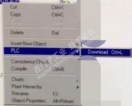 7)继续选择第一块程序Charts,右击后,选择PLC中的Dowload,跳出Load框,选择第二个(System and user program),接着点击Load,出现程序下载进度条。进度到100%确认后,用手按住下载器的黑色按钮,程序卡就能弹出来;