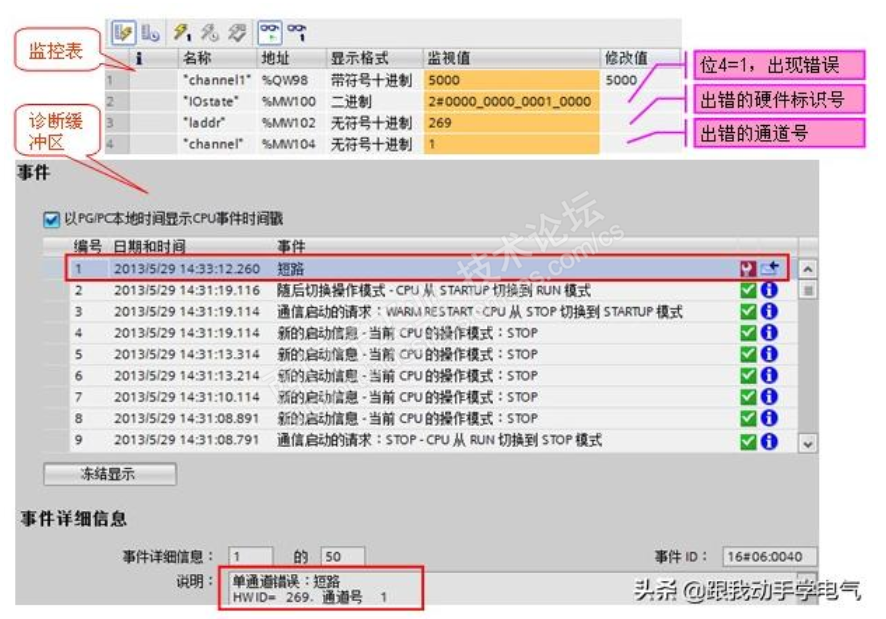 大家都知道,在硬件组态中,模块的通道有一个可勾选的启用短路诊断选项,是默认勾选的,如果未接线或者短线,模块会闪红灯,这个很好观察。那么,如何让不在现场的工程师们知道现场模块短线呢?
