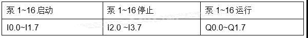 假设一个场景,现场有16台设备,需要控制16台泵的启停,IO地址如下表所示: