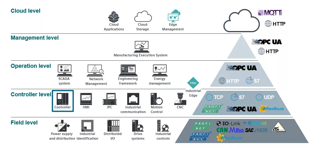 通常自动化“金字塔”是用于描述工业环境中工厂的不同自动化水平。本文介绍自动化“金字塔”中各层级与S7 PLC控制器的各种通信方式。通过对通信协议和通信类型进行概述,介绍这些通信协议和通信类型如何将控制器连接到自动化“金字塔”中的各个层级。