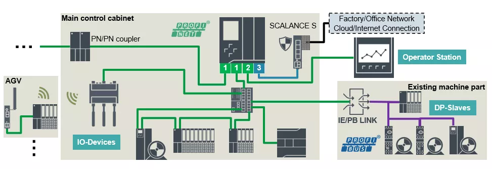 除了标准总线系统外,S7 PLC 控制器还支持多个其他总线系统,通过PN/*-链路模块将这些总线转换为PROFINET IO。这些PN/*链路模块就像标准IO设备一样由IO控制器处理,最终,其他总线系统连接的传感器、执行器、电机或任何其他设备,就像使用SIMATIC控制器下的标准IO设备一样使用。
