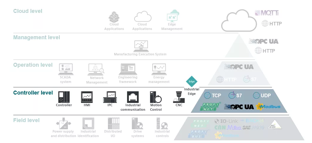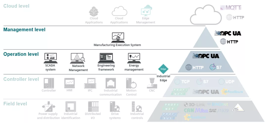 控制层级以上讨论的是MES、SCADA或其他不同的管理和工程系统。这些系统在历史上更受IT控制,因此大多数系统都基于PC或服务器架构之上。未来将出现像Industrial Edge这样的网关,它将处理来自下级的数据,并将它们作为预处理数据传输到这些系统。