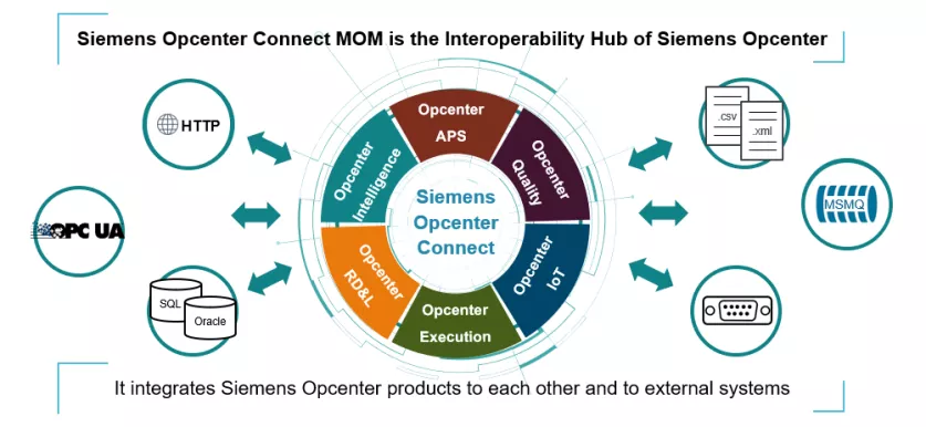 对于从设备到管理和操作层级的连接,有西门子Opcenter Connect。此产品可以使用不同的通信驱动程序的协议来从机器中获取需要的数据。举个例子来说,Opcenter包含OPC UA、HTTP或S7协议的驱动程序。