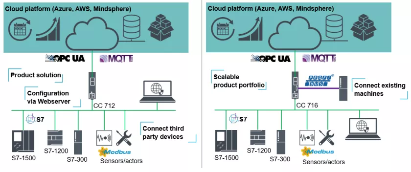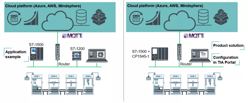 通过这个协议, S7 PLC控制器具有直接连接到云系统的可能性。西门子产品组合中也具有不同的产品和解决方案,具体选择取决实际需求。