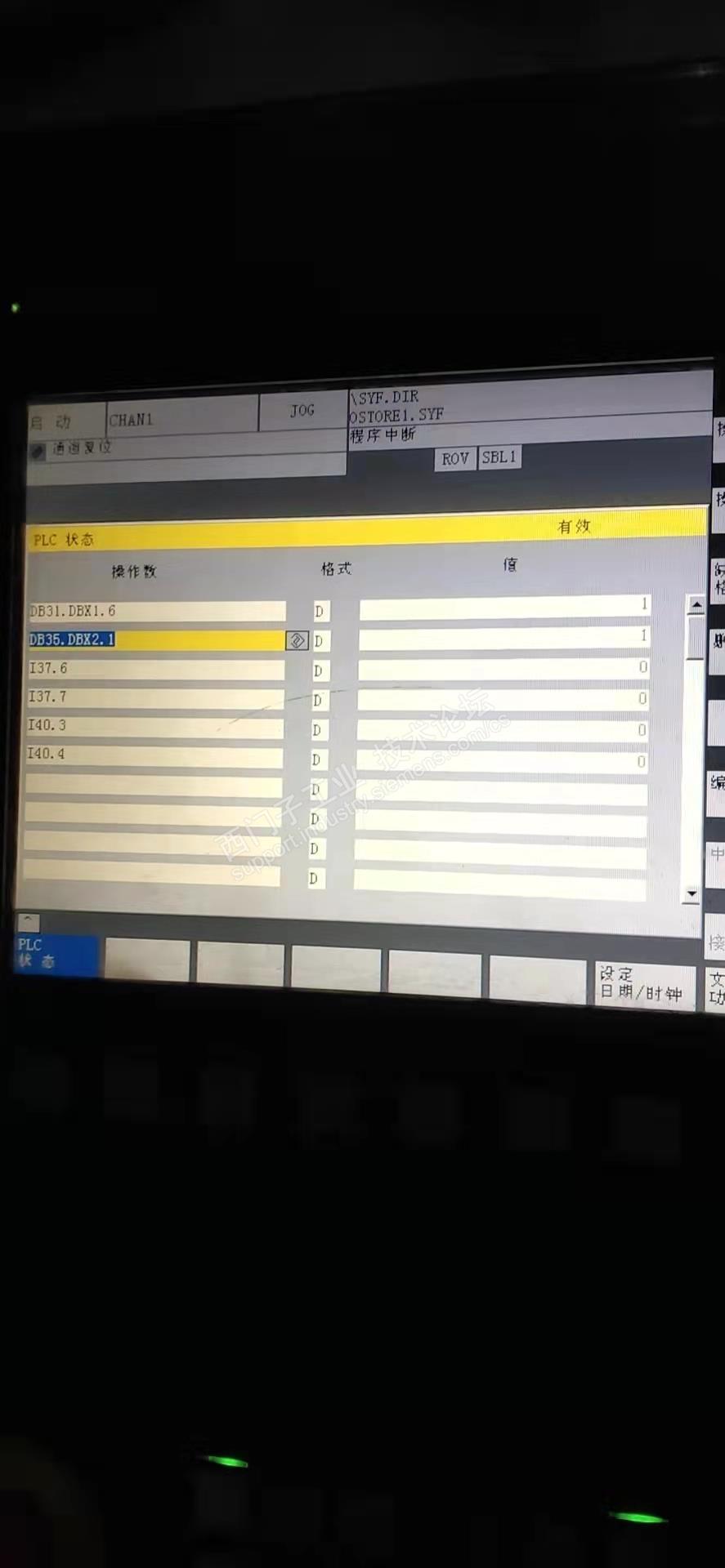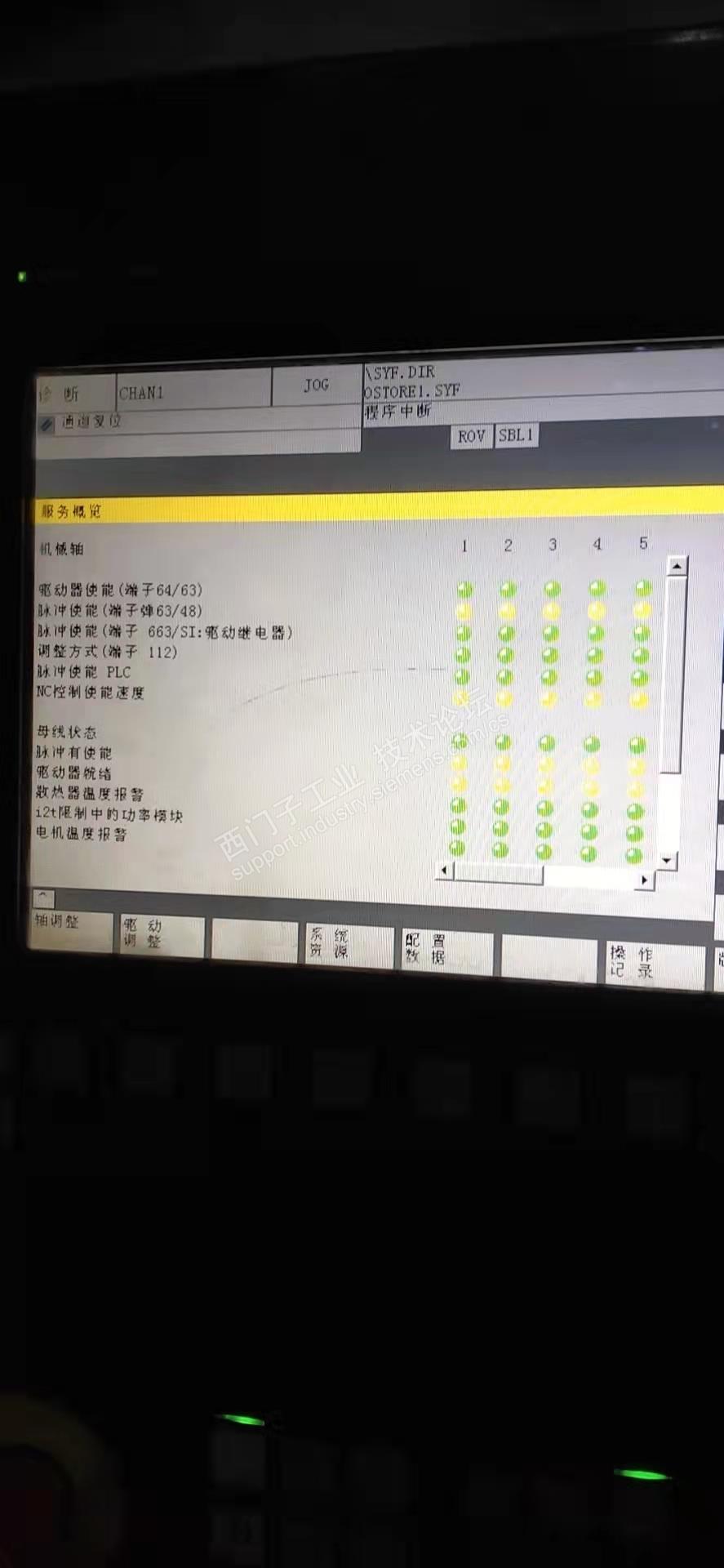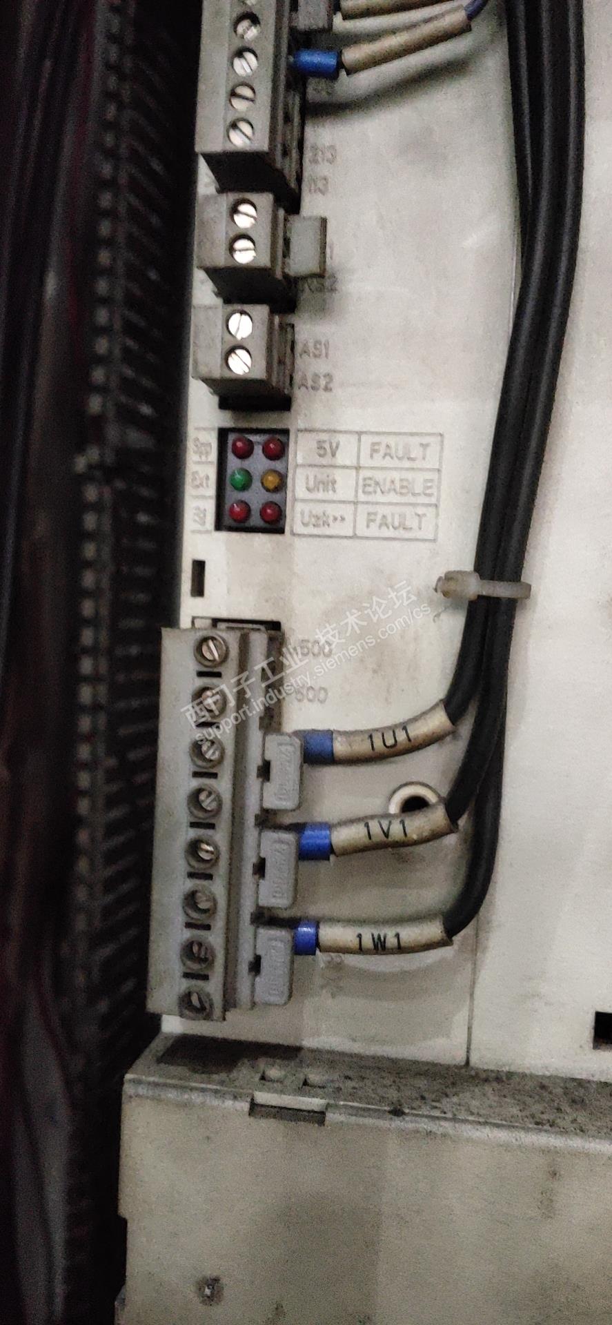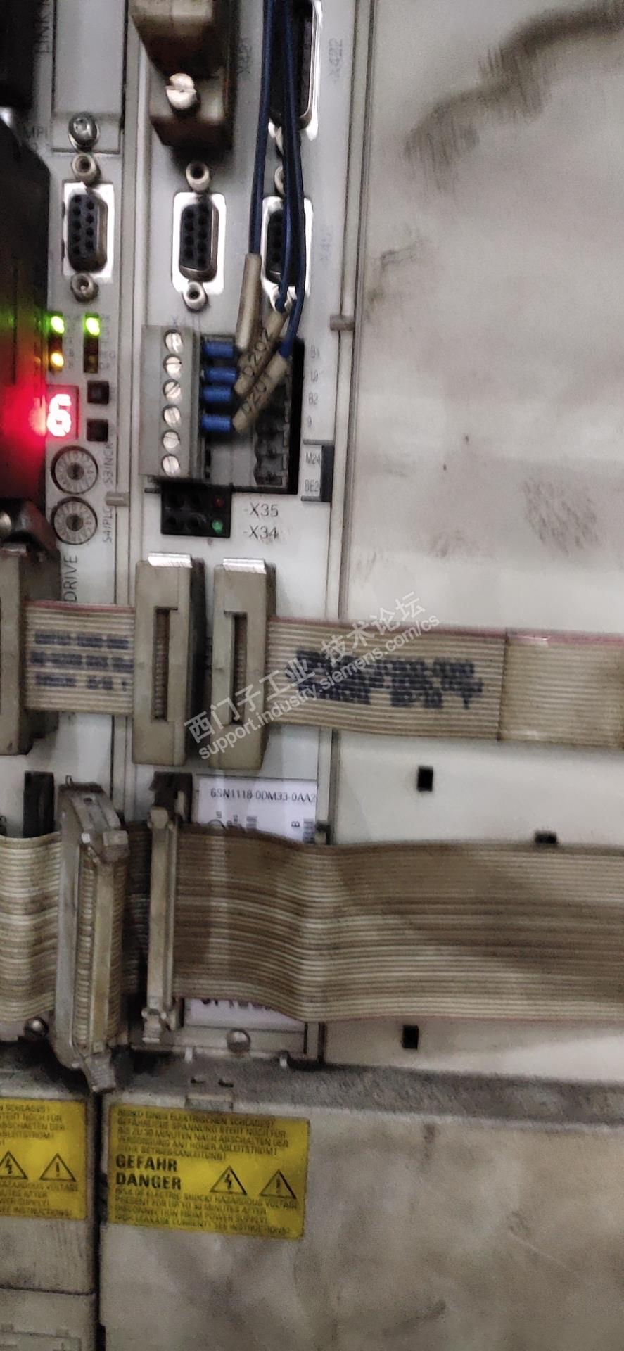 系统是840D的,通过诊断界面,发现外部使能信号正常,通过监控使能状态发现,使能不满足,懂得系统的人都清楚,这时要看电源模块状态,通过监控发现模块灯一个都不亮,于是,检测了电源模块的进线电压发现是正常的。测了母线电压直流一百多,不用怀疑了,硬件故障,这个我弄不了,发走修好了。