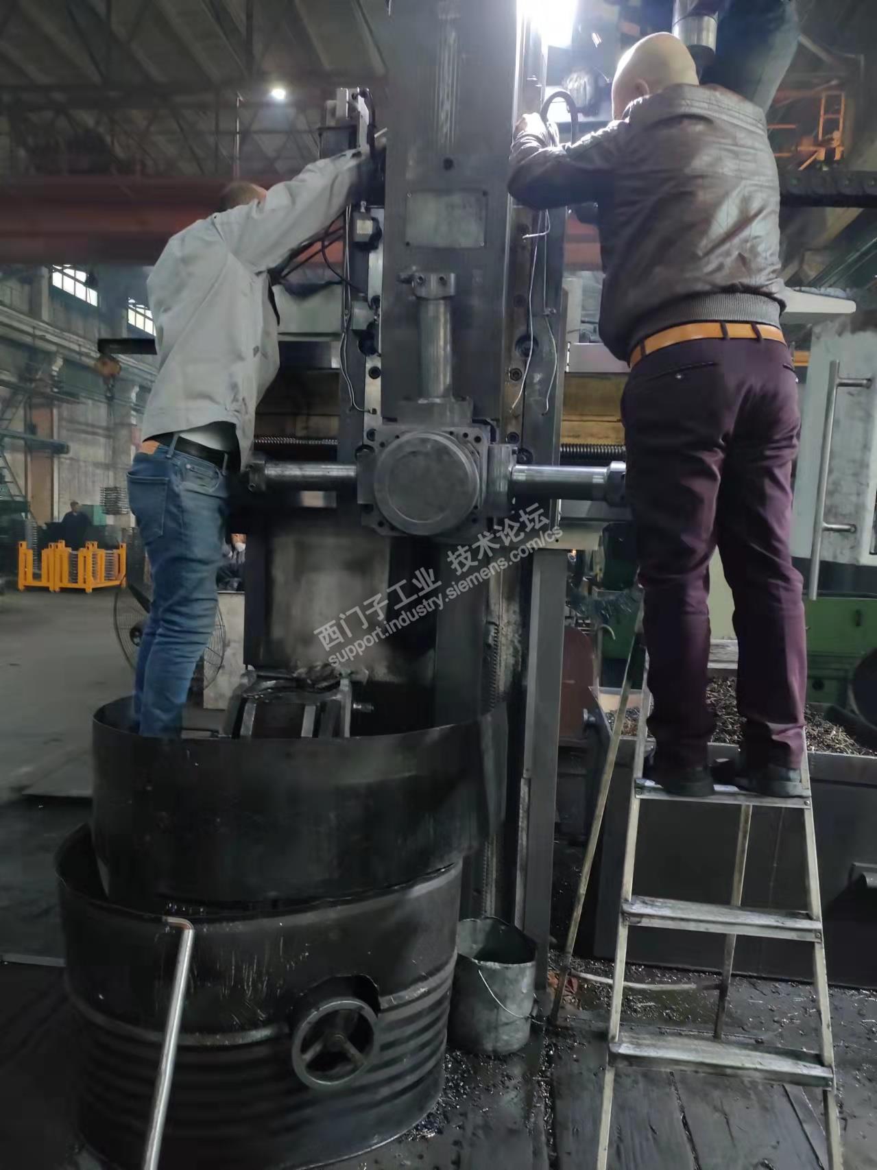 总之,不管是哪一种都得拆平衡油缸,结果一拆平衡油缸发现,机械结构设计时未考虑到这一步的维护,扭力扳手根本无法拆卸,如果要拆就要将滑枕整体拆下来。这么一来,工作量就太大了。