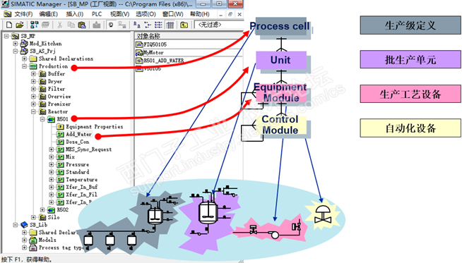 ANSI/ISA 88 标准的工厂层级划分及与 PCS 7 的对应关系如下: