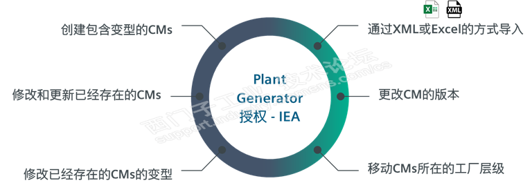?PCS7 V9.1版本中集成的 Plant generator (需 IEA 授权),可以批量创建 CM 实例,配合工艺列表编辑器(Technological list editor)对导入数据进行信号、参数设置等。