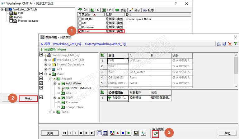 CMT 的另一大优势是支持 CMT 到 CM 的同步。即使项目前期考虑再周全也难免在实际调试中遇到特殊实例的情况。如果使用早期的 PTT(过程标签类型) 功能,只能删除后重新导入或逐个修改这些特殊实例。而基于 CMT 模板时,无论何时都可以实现 CMT 到 CM 的同步更新。
