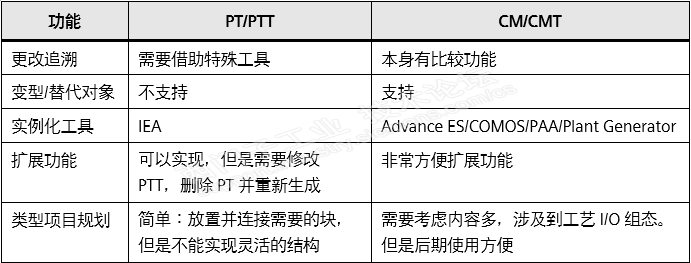 CMT 在 PCS 7 标准化和模块化编程道路上的优势不言而喻,前文仅介绍了其冰山一角。相较于 CFC 程序手动拷贝粘贴的方式,CMT 优势显而易见。与 PTT(模板批量生成实例)的方式相比,CMT 的优势也不遑多让,具体如下表所示。